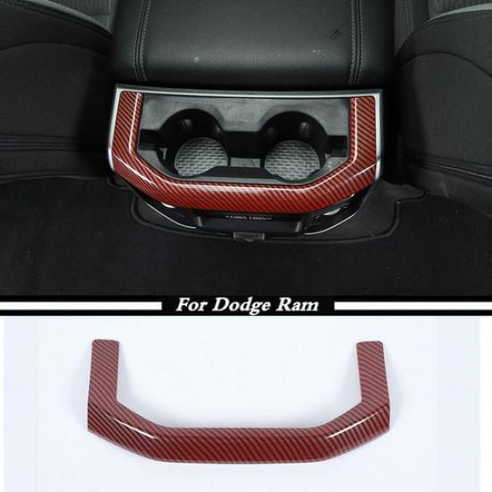 For - Dodge Ram 1500 Red Carbon Rear Cup Holder Panel Trim Cover Frame