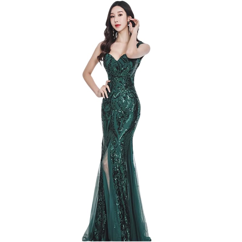 [Product] Mermaid Dress (Green) [Size] XL Bust: Approx. 88-104cm Waist: Approx. 72-88cm Hips: Approx. 92-118cm Length: Approx. 155-160cm [Introducing a charming mermaid dress to brighten up special moments!] This dress is a one-piece outfit that can be coordinated with any outfit and has an excellent design.♪ Add a jeweled necklace or earrings and you're sure to shine brightly at parties such as weddings, after-parties, and thank-you parties.◎ It's also recommended as a bridal dress for after-parties.♪ [A mermaid dress that combines beauty and elegance] Made with sequins and tulle, this beautiful and feminine mermaid-line long dress is a must-have! The flared silhouette at the hem beautifully accentuates the curves unique to women, creating a design that lets you shine with confidence. On the other hand, the design is not too flashy and the dress line is not too cute, making it perfect for sophisticated women. [A luxurious mermaid party dress that enhances confidence and beauty] Made with luxurious fabric that feels firm and slightly heavy, it has a luxurious finish. It subtly covers areas around the stomach and waist that you are concerned about. The maxi-length dress