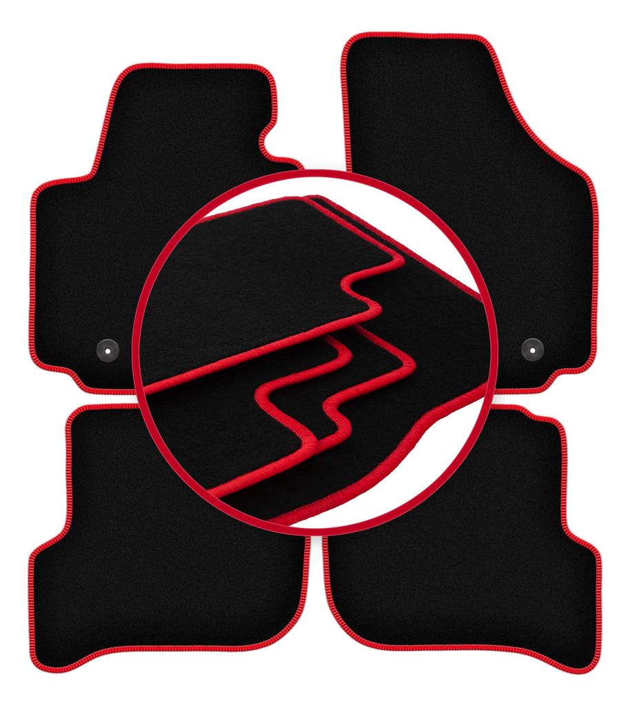 Velours-Fußmatten mit rotem Rand für: Seat Altea XL Minivan (2006-08.2008)