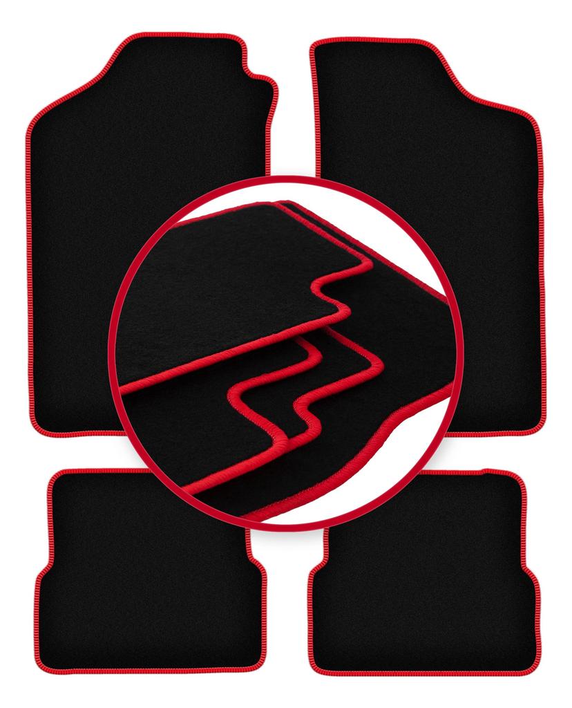 Velours-Fußmatten mit rotem Rand für: Volkswagen Golf II Schrägheck (1983-1992)
