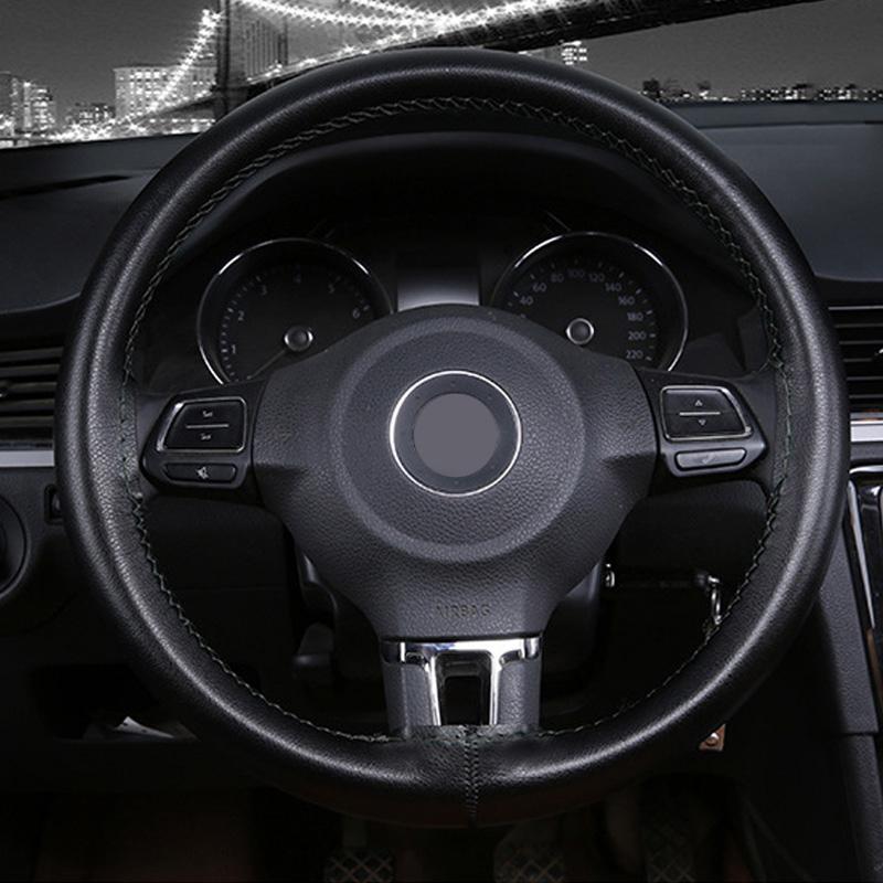 Handnähen Lenkradbezug 15in 37-38cm DIY Teile Ersatz Fahrzeug Verschleißfest 1 Stück Schwarz Atmungsaktiv