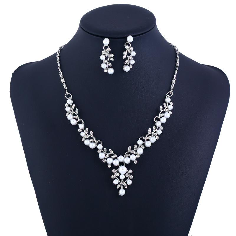 Name: Women Leaf Pearl Necklace Earrings
