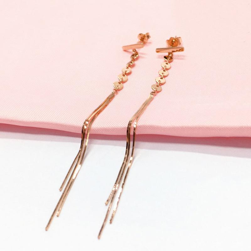 Purple Gold-Plated Rose Gold Disc Snake Bone Temperament Fringed Fashion Foreign Style Long Earline Women