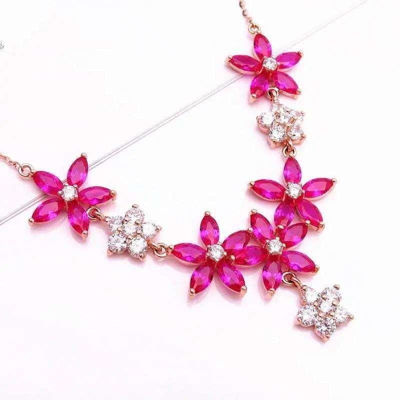 Color Gold Inlaid Redstone Flower Necklace Fashion High-End Temperament Purple Gold Plated Rose Gold Item