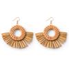 Hand-Woven Geometric Rattan Raffia Earrings, Retro Resort Fan Stud Earrings, Earrings For Women