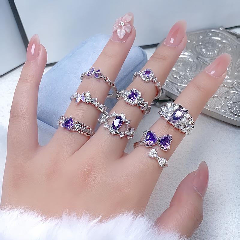 Lila farbener Schatz Zir*****Stiftring, Leichter Luxus, Hohes Gefühl, Exquisiter Super-Fee-Persönlichkeitsring