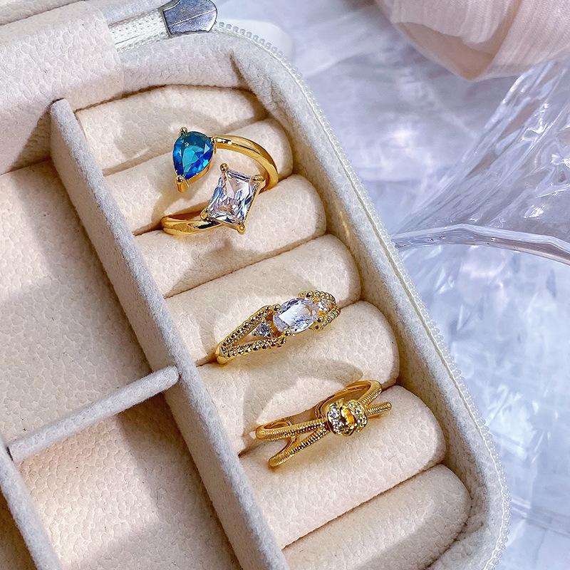 Medieval Stacked Wearing Sea Blue Horse Eye Diamond Opening Ring Women'S Double Head Bow Blue And White Flash Diamond Personalized Ring