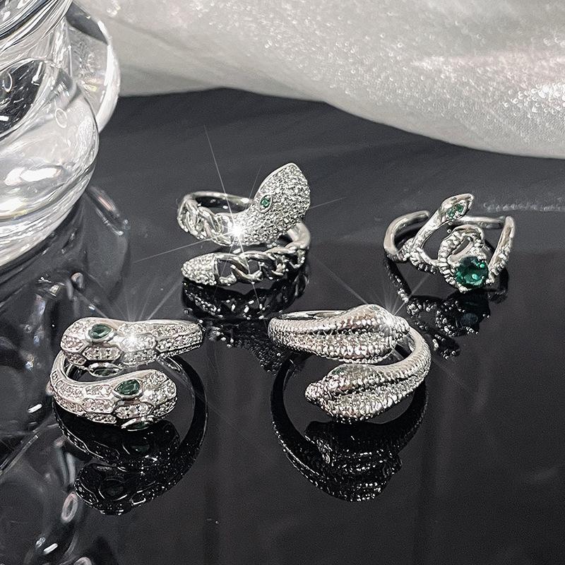 Neues Produkt Voller Diamanten Zirkon Schlangenring Serie High-End Gefühl Leichter Luxus Kalter Wind Gestapeltes Tragen Personalisierter Offener Ring Frau