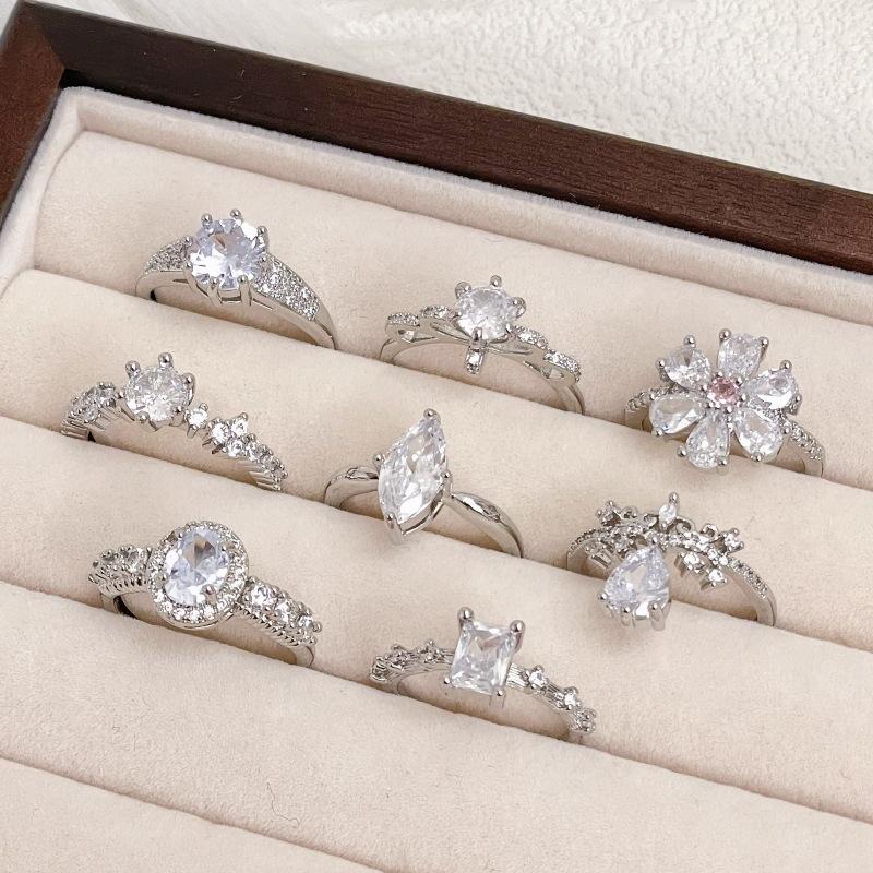 Micro-Set Zircon Bright Imitation Diamond Open Ring Light Luxury High Sense Niche Design Fashion Accessories Women