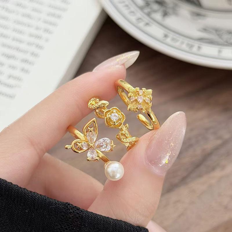 Nischen-Temperament Modisches Schlichtes Design Schmetterling Rose Perle Offener Ring Exquisiter Leichter Luxusring