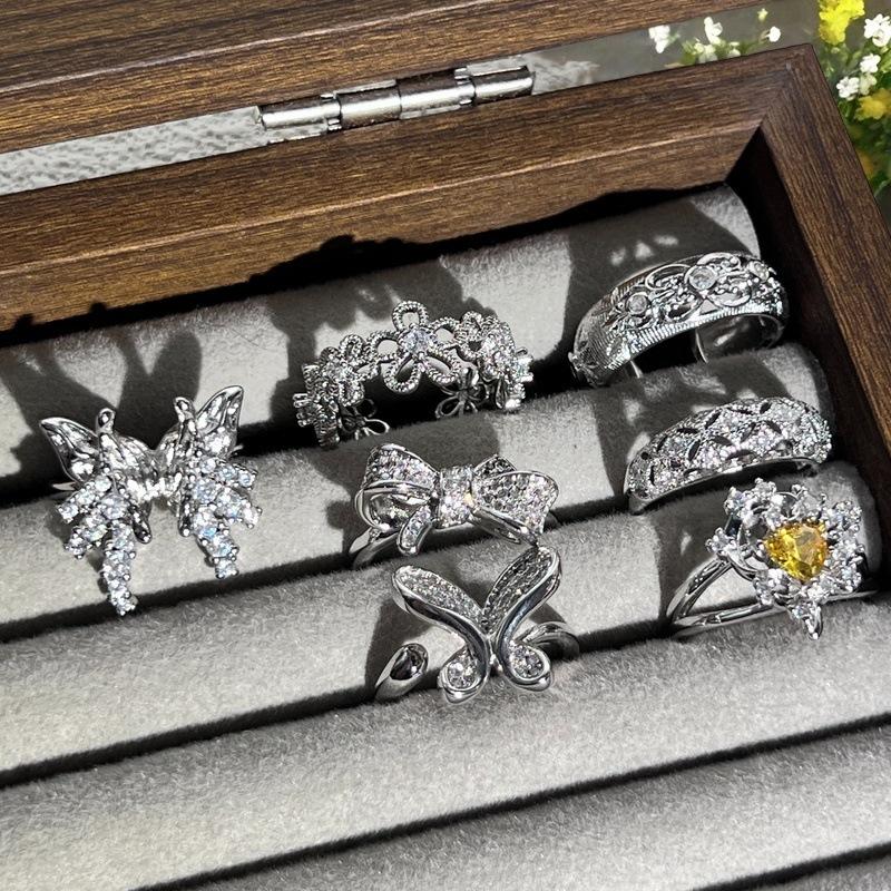 Full Diamond Zircon Bow Open Ring Niche Design Retro Temperament High-End Ring