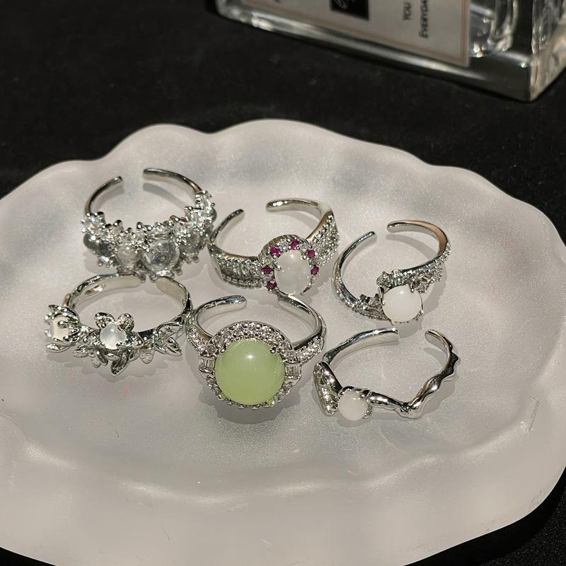 Retro Imitat Jade Chalcedon Exquisiter Ring Damen Süß Kühl Nische Opal Hoher Sinn Einfach Einzigartiges Design Accessoires
