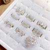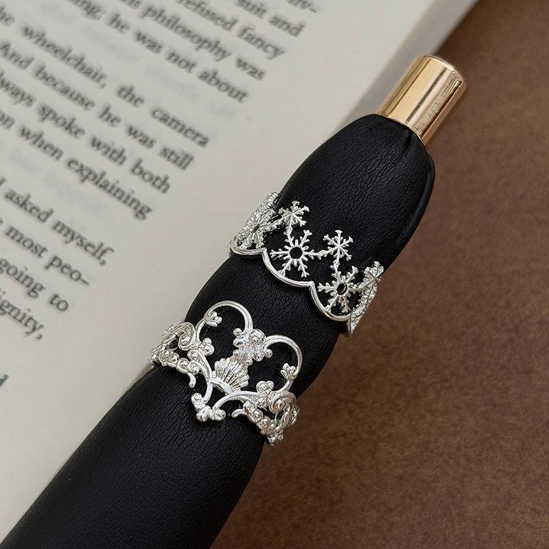 Light Luxury Retro Court Style Snowflake Diamond-Encrusted Zircon Retro Engraved Hollow Opening Ring Niche Personality Ring Woman