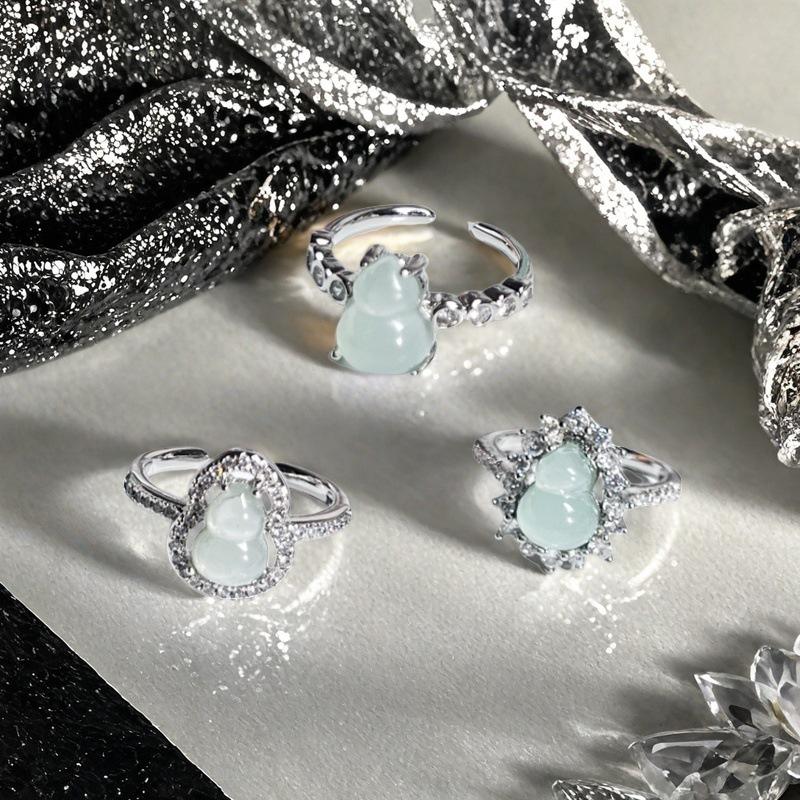 Gourd Imitation Jadeite Open Ring Women'S Niche Design High-End Light Luxury Full Diamond Zircon Ring