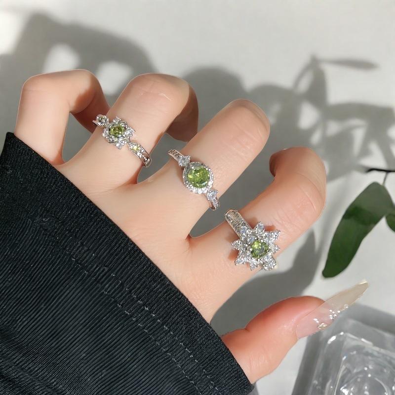 Spring Niche Design Colored Treasure Olive Green Zir*****Pen Ring Luxury High-End Heart-Shaped Full Diamond Ring