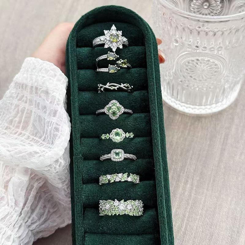 Green~ Lucky Grass Olive Green Four-Leaf Clover Zir*****Pen Ring Super Flash Light Luxury Stacked Ring