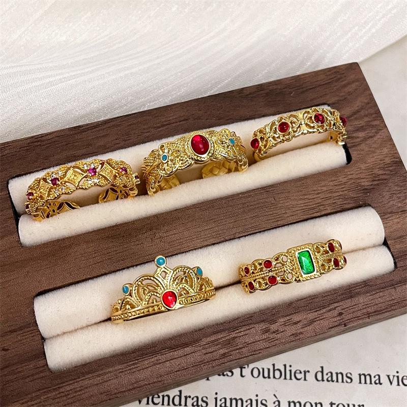 Medieval Gold Imitation Chalcedony Open Ring Niche Design Sense Light Luxury High Sense Personality French Hollow Ring