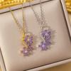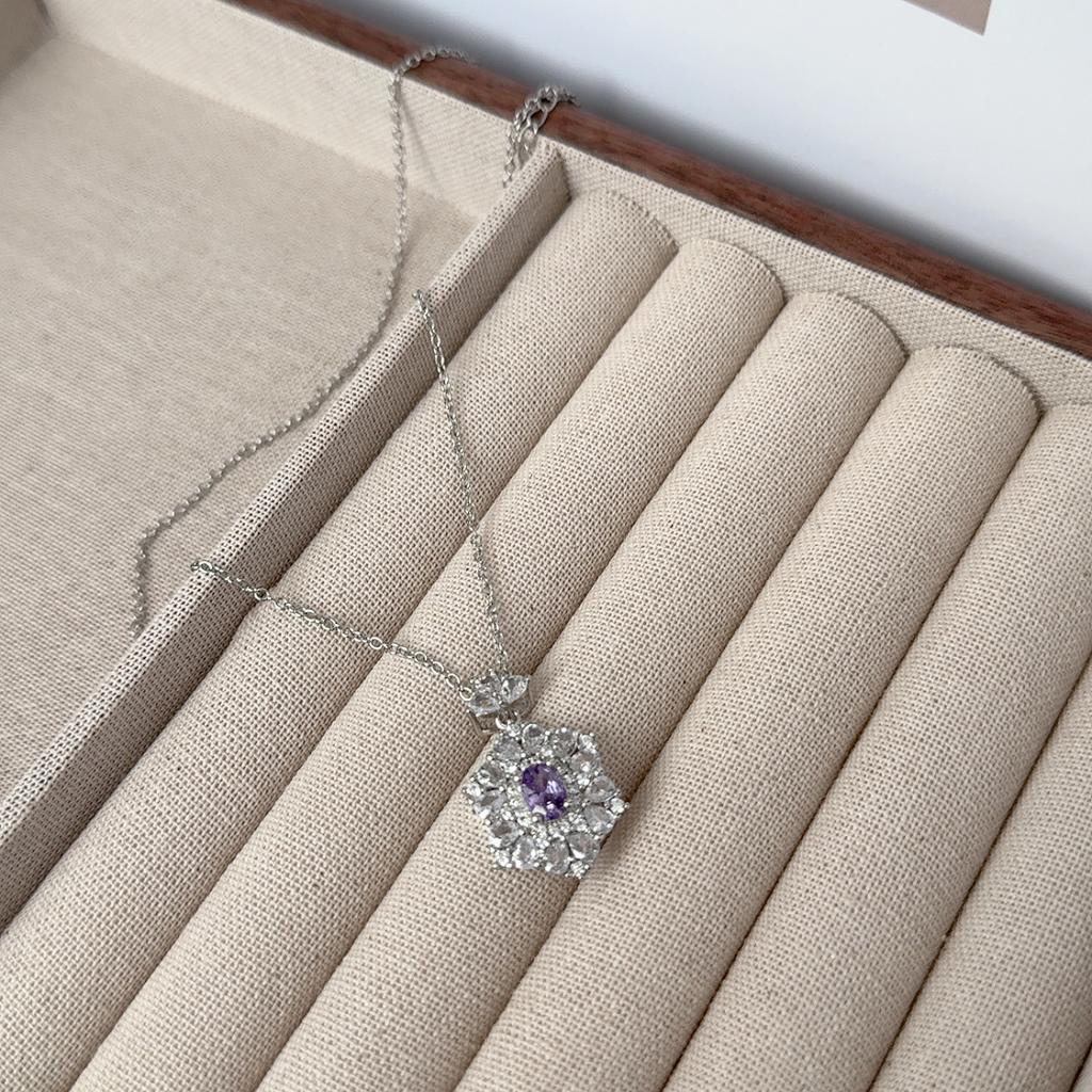 Purple Zircon Flower Pendant Necklace Light Luxury Silver Diamond Design Women'S Retro Elegant Fashion Accessories Jewelry