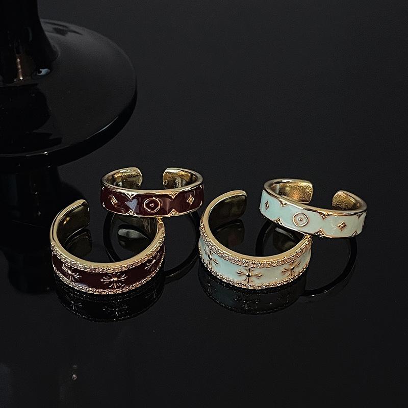Light Luxury Mint Green Retro Open Women'S Ring Niche High-End Sense Stacking Ring Pair Ring