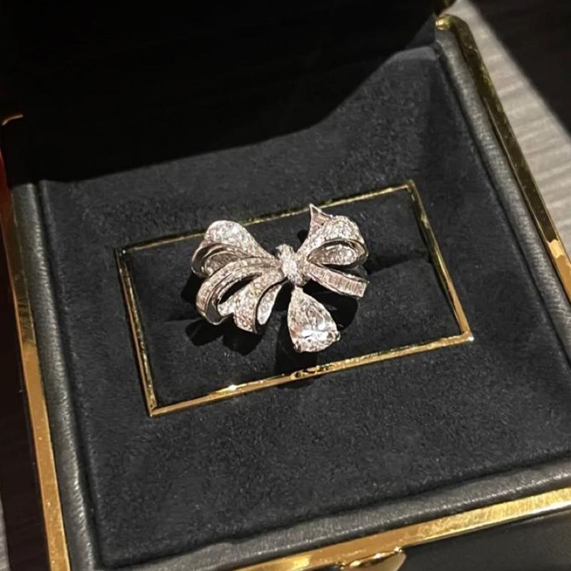 Bow, Water Drop Ring, Female Flash Diamond, Zircon, Light Luxury Texture, Niche Design, Sweet And Cool Style, Advanced Feeling Index Finger