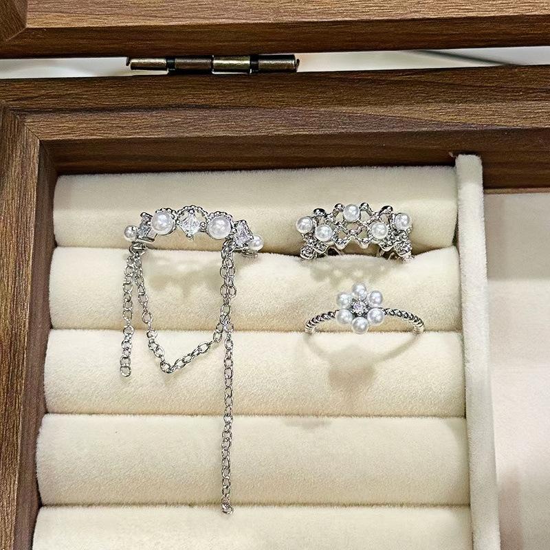 Exquisite Niche High-End Bead Fringed Ring Women'S Fashion Light Luxury Zircon Double-Layer Geometric Open Index Finger Ring