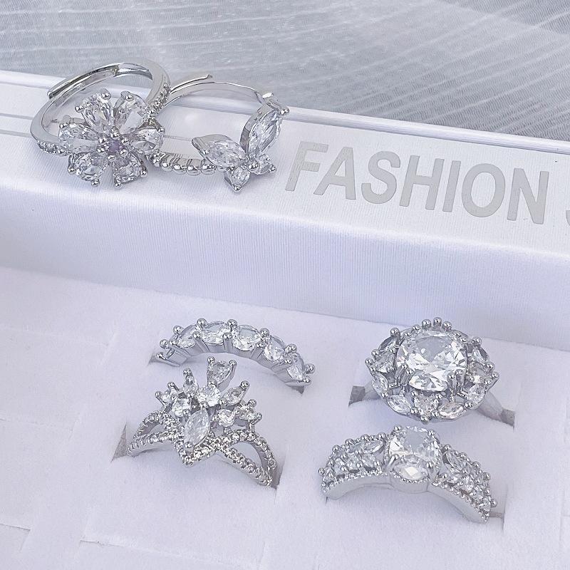 Crown White Diamond Zircon Temperament Retro Personality Adjustable Ring Open Ring Stacked Index Finger Ring