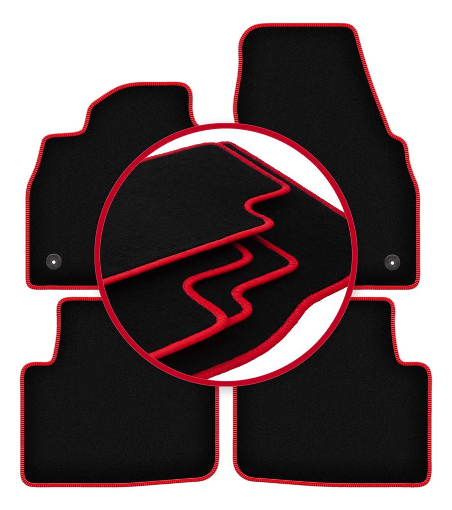 Velours-Fußmatten mit rotem Rand für: Skoda Scala Schrägheck (2019-)