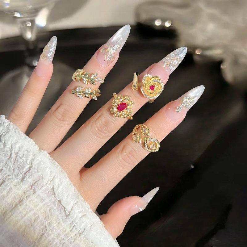Full Of Diamonds, Zircon Flowers, Leaves, Flower Opening Rings, French Retro Medieval Style, Niche Court Style Rings