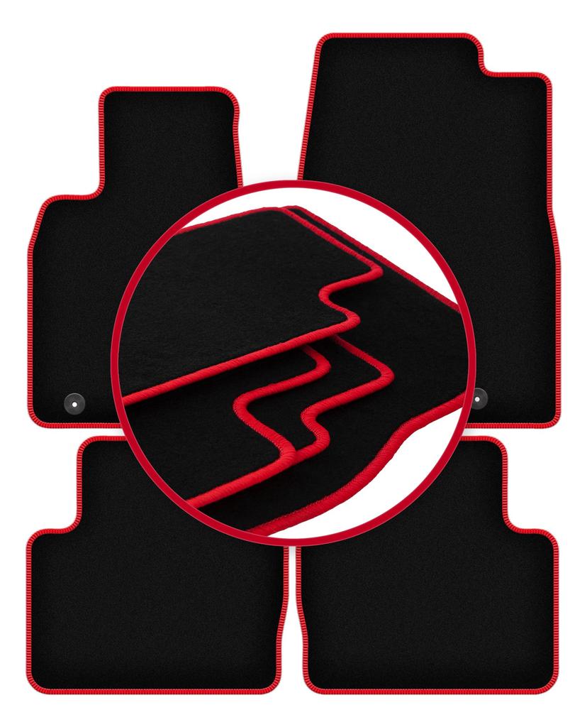 Velours-Fußmatten mit rotem Rand für: Mazda 3 IV Schrägheck, Limousine (2019-)