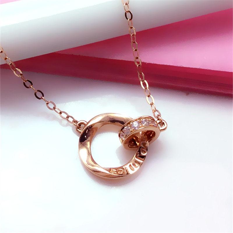 Purple Gold Double Ring Interlocking Necklace Fashion Rose Gold Plated Mobius Collarbone Chain Women