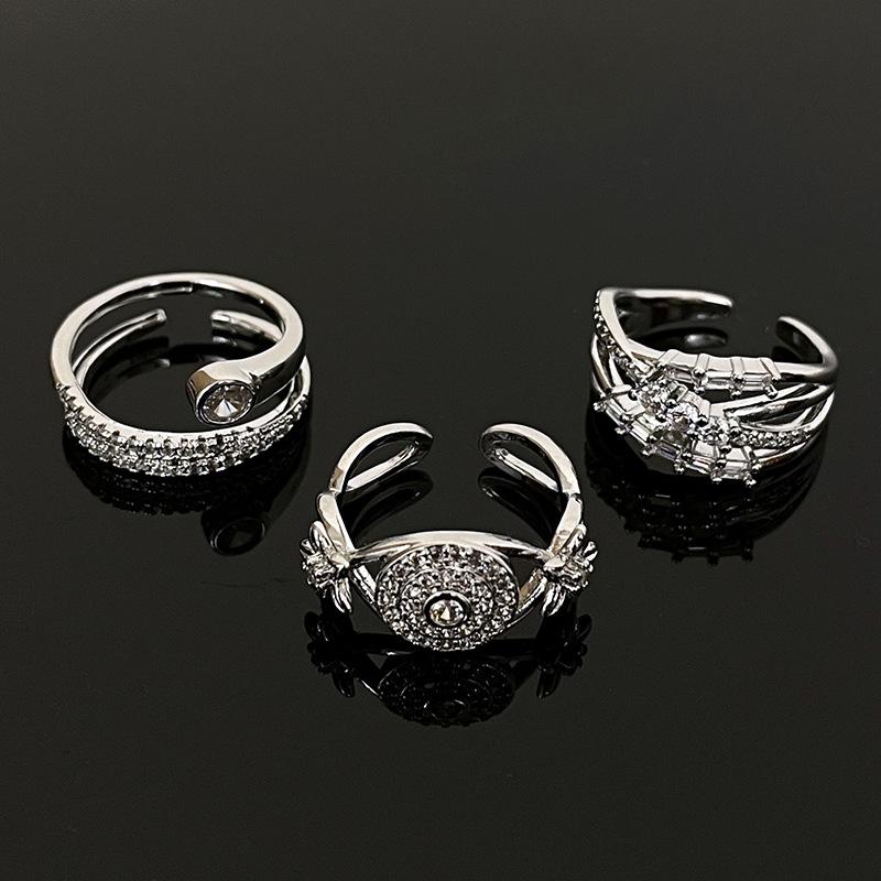 Geometric Full Diamond Zircon Ring Women'S Light Luxury Niche Design High-End Index Finger Ring Set Cold Wind Ring