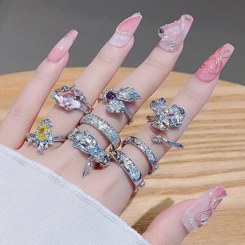 Bird Flower Irregular Fold Butterfly Stacked Open Ring High Sense Zircon Personality Niche Design Ring