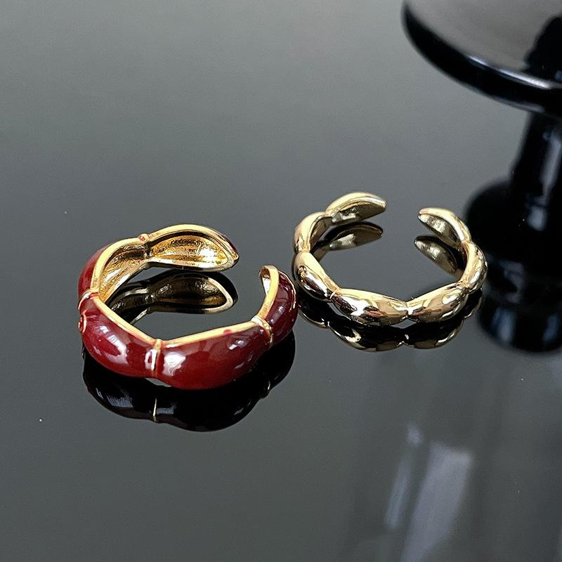 Französischer Schlichter Roter Drip-Glasur Bambusgelenk Offener Ring, Ein Kalter Weiblicher Täglicher Retro-Kombinationsring