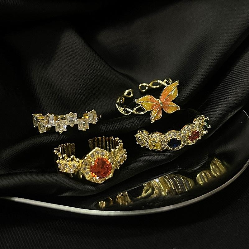 The Same Open Ring Gold Light Luxury High Sense Medieval Court Style Butterfly Color Zircon Woman