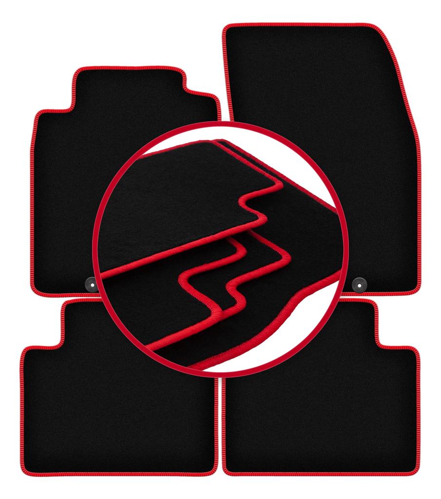 Velours-Fußmatten mit rotem Rand für: Nissan X-Trail III T32 FL SUV (2017–2021)