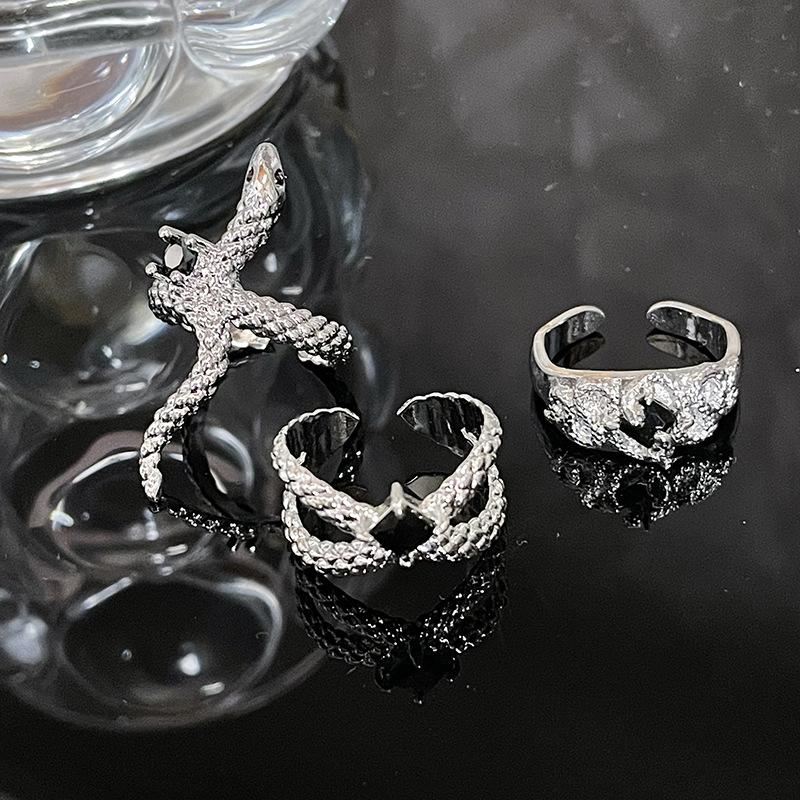Nische Designgefühl Dunkler Wind Diamantenbesetzter Zirkon Serpentin Persönlichkeit Französische Faltung High-End Gefühl Offener Ring Damen