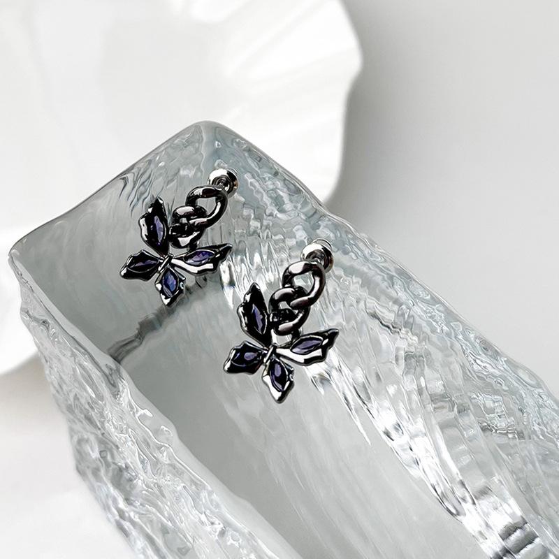 Sweet Cool Wind Dark Butterfly Stud Earrings Earrings Purple Gemstone Earrings Women'S Niche Design High-End Cool