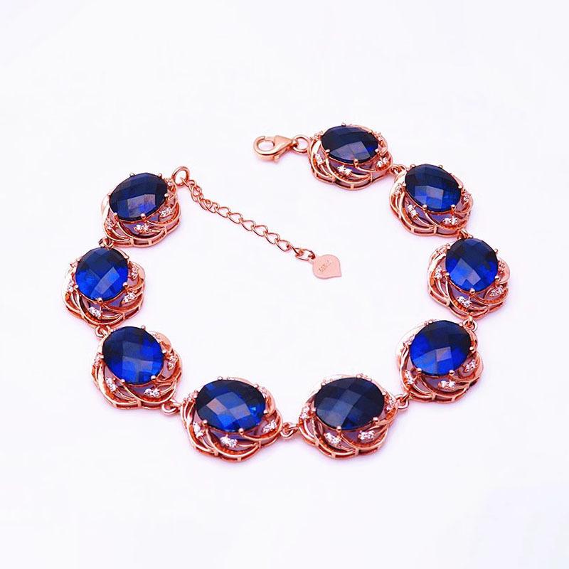 Purple Gold Luxury Bluestone Egg Surface Bracelet Rose Gold Plated Color Gold Round Zircon Bracelet
