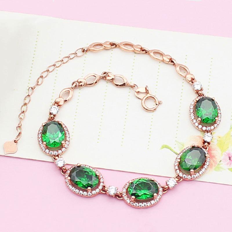 Purple Gold Inlaid Greenstone Egg Surface Inlaid Diamond Plated Rose Gold Luxury Classic Color Gold Bracelet
