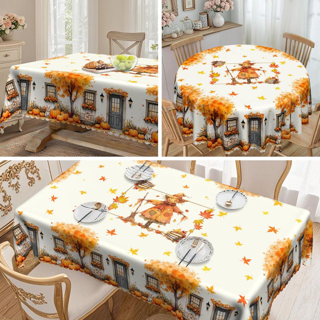 1 Fall Thanksgiving Vintage Elegant Pattern Tablecloth, Vintage Arch Swing, Maple, Pumpkin Tablecloth