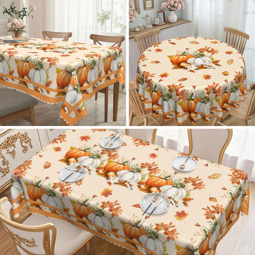 1 Piece, Waterproof And Dirt-Proof Polyester Thanksgiving Tablecloth, Autumn Pumpkin Tablecloth, Suitable For Long And Round Tables