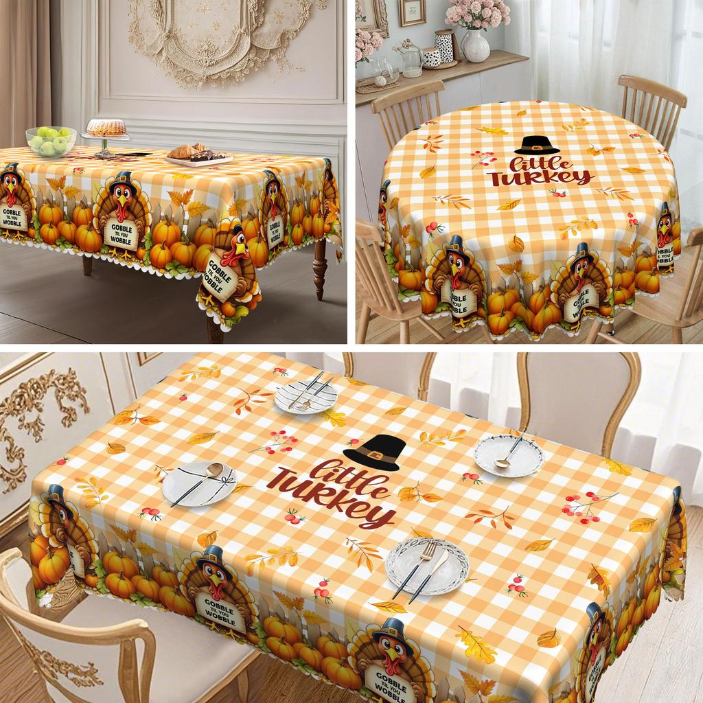 1 Herbst Thanksgiving Polyester Tischdecke Cartoon Truthahn, Kürbis und Sonnenblumenmuster, Rechteckige Tischdecke