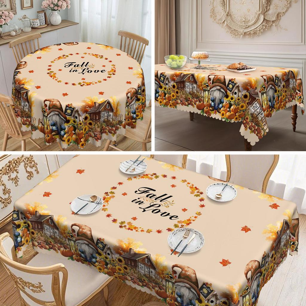 1 Happy Autumn Gnome Tablecloth With Pumpkin House Maple Leaf Pattern - Dustproof Polyester Textured Tablecloth