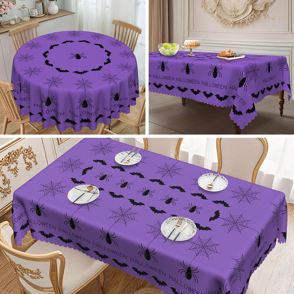 1 Piece, Halloween Round Purple Tablecloth 60 Inches Happy Halloween, Suitable For Long/Round Tables