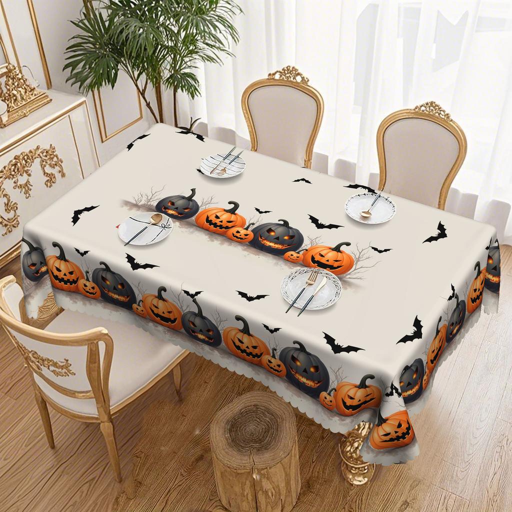 1 Piece Halloween Black And Orange Pumpkin Tablecloth, Black Bat For Day Of The Dead, Party Decorations