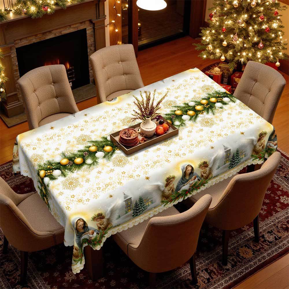 Christmas, Jesus Rectangular Round Tablecloth, Snow Christmas Tree Elements, Table Decorations, Festive Atmosphere