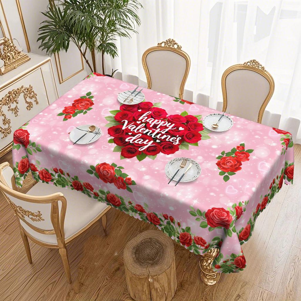 Pink Rose Love Happy Valentine'S Day Round Tablecloth, Valentine'S Day Square Tablecloth