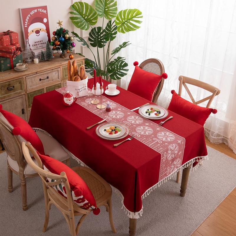 Red Christmas Deer Christmas Ball Polyester Jacquard Retro Fringed Tablecloth Coffee Table Dining Table Cloth Cover Towel