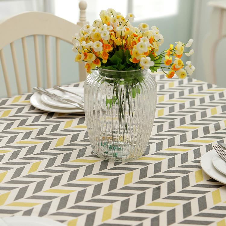 Modern Simple Polyester Cotton Imitation Hemp Geometric Lines Trapezoidal Printing Tablecloth Tea Tablecloth Customization
