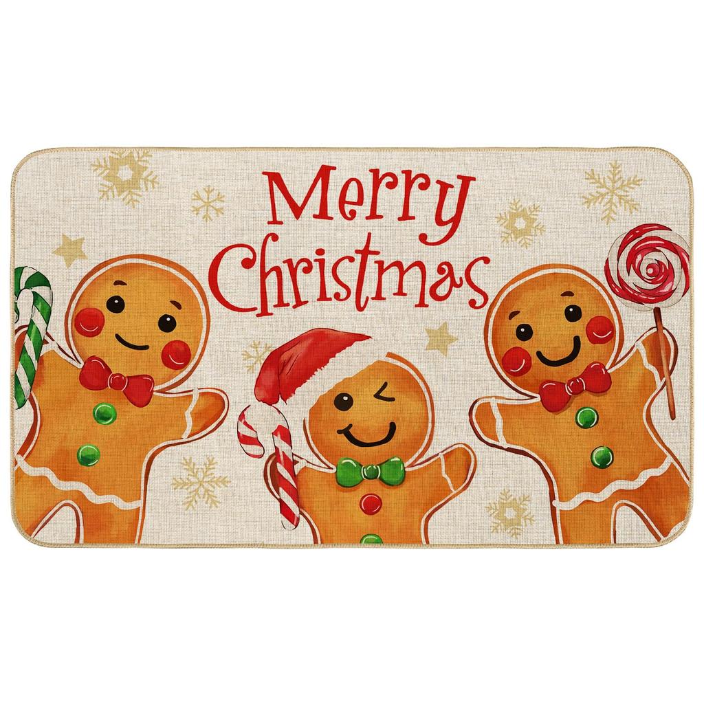 Weihnachten Fröhliche Fußmatte Lebkuchenmann Cartoon Rutschfeste Eingangsfußmatte Innen Außen Teppich Heimdekoration